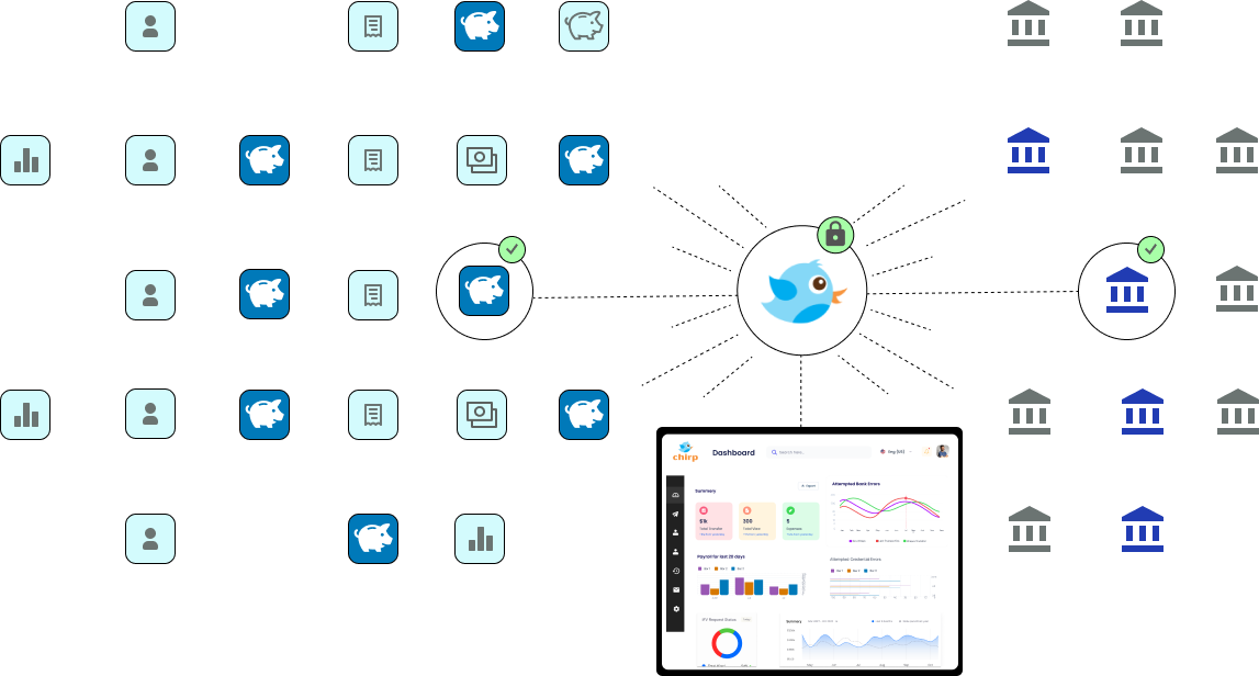 At Chirp, we empower you to securely share your data with the apps and services you choose, utilizing bank level security, while enhancing your overall digital financial experience. When you use Chirp to connect your financial accounts to an app, the process is both efficient and secure. Here’s what happens on our end.